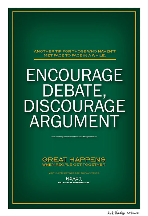 Small type reads: Note: Throwing the stapler would constitute argumentative.